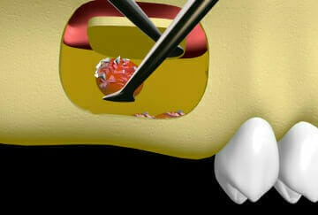 These grafts are usually carried out at the same time as the implant is placed using bone chips produced in a laboratory, often mixed with the patient’s own bone which is a natural byproduct of drilling the hole for the implant.
