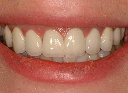 So the patient got to test drive her new teeth for 2 weeks and then came back to give us feedback about them – what she liked, what she didn’t. We modified the temporary teeth until she was happy and then fabricated and fitted the final Ceramic crowns.