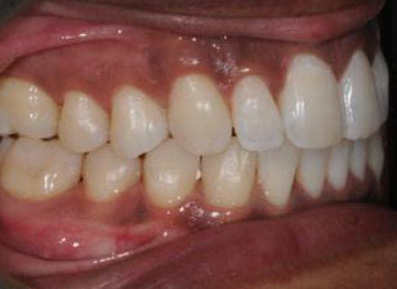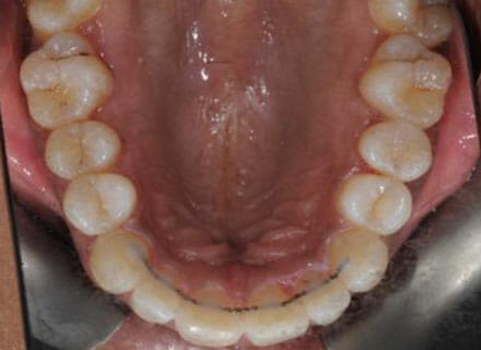 This patient was unhappy that his upper jaw was too small and did not fit with his lower jaw. the bite was all wrong and the front teet stuck out too much. We widened the upper jaw using a wire on the inside at the same time as using clear bracket brace wires on the outside to straighten the teeth. Using both inside and outside wire braces together reduced treatment time by 30% – 40% and the results speak for themselves.
